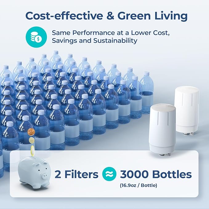 • Cost-effcctive: Same performance as the original filter but at a lower cost. Save up to 3000 single-use 16.9 oz plastic bottles