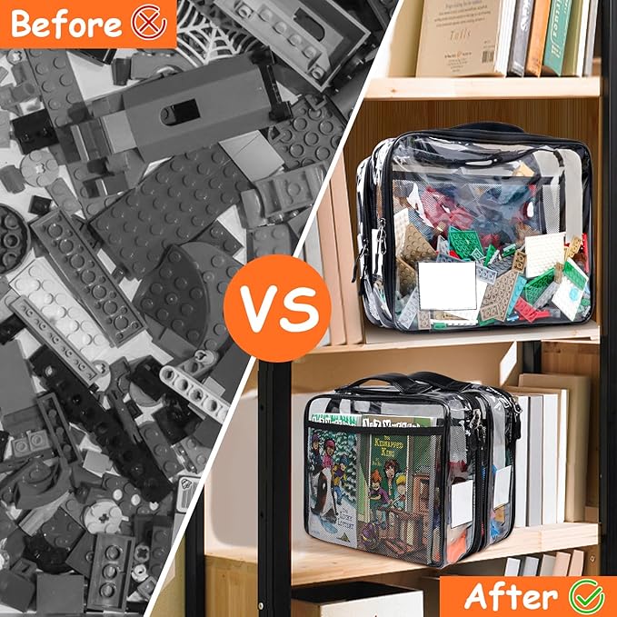 • 【Manual Pocket & PU Leather Handle】The clear name tag is an important part of the toy storage for lego with PU Leather Handle, you can easily identify the items in the case. The manual pocket is an additional feature of the clear storage bags for lego storage, you can find manuals when you need them. The mesh pocket can also store children's favorite toys or picture books.