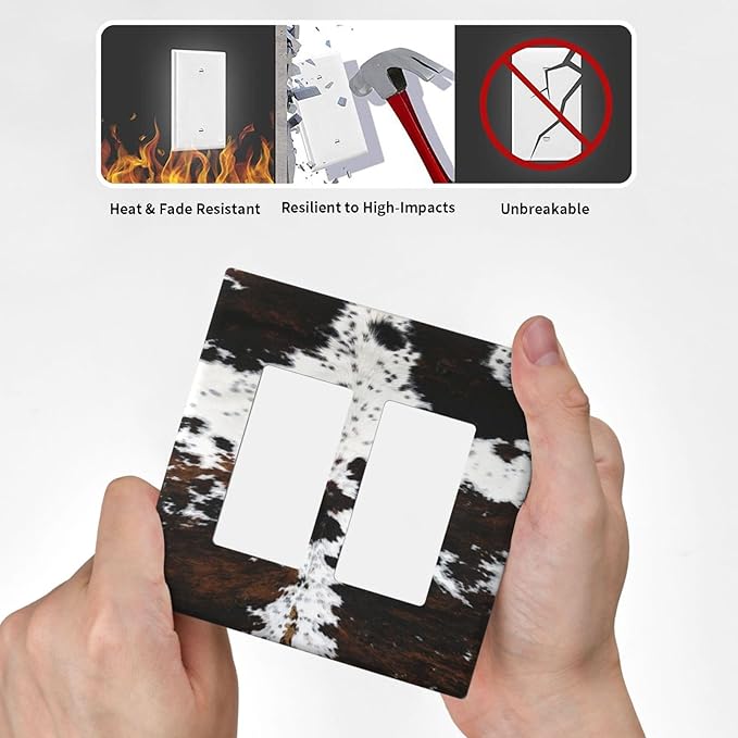 Western Farm Highland Cow Cowhide 2 Gang Rocker Decora Light Switch Cover Decorative Outlet Covers Wall Plate Electrical Faceplate Switchcovers GFCI for Farmhouse Bathroom Bedroom Living Room Decor