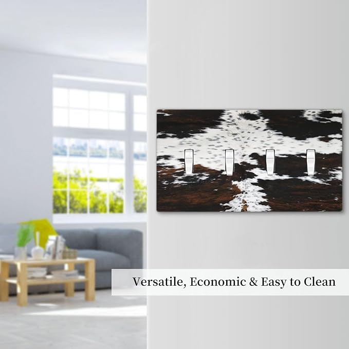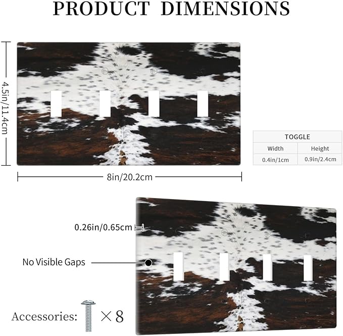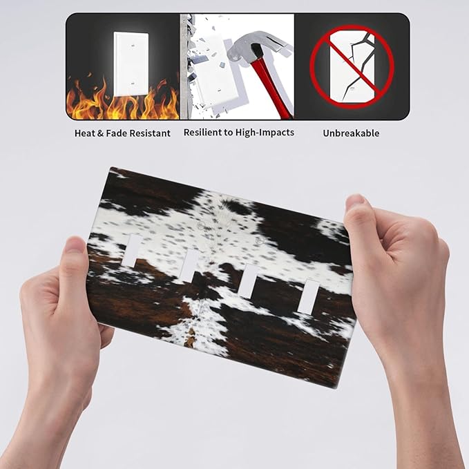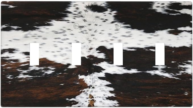 Western Farm Highland Cow Cowhide Quad Toggle Light Switch Cover Decorative 4 Gang Wall Plate Electrical Faceplate Switchplate for Farmhouse Bathroom Bedroom Living Room Decor