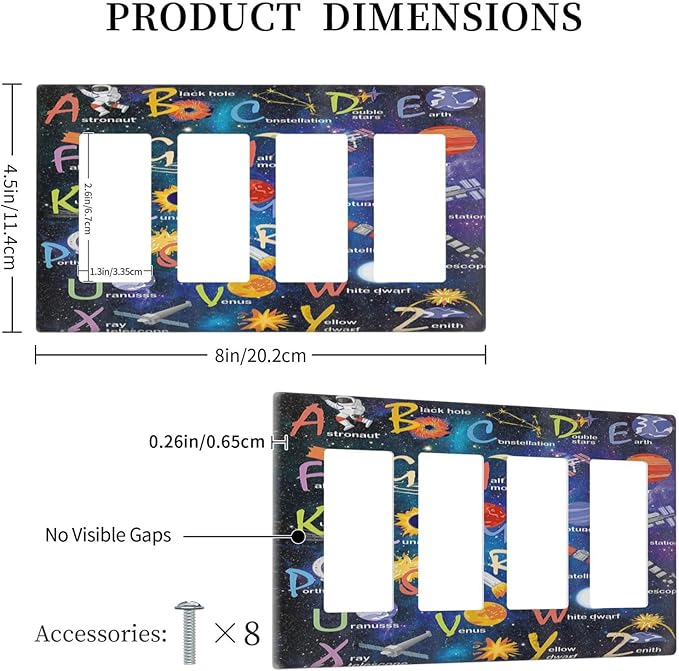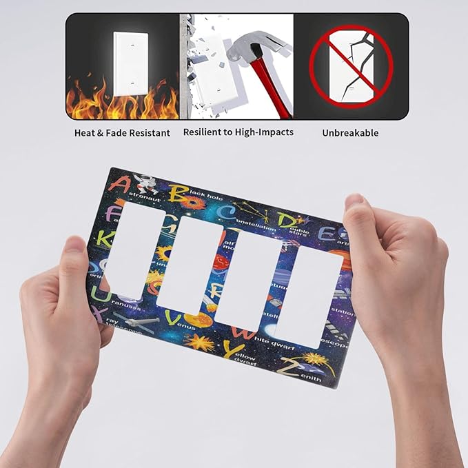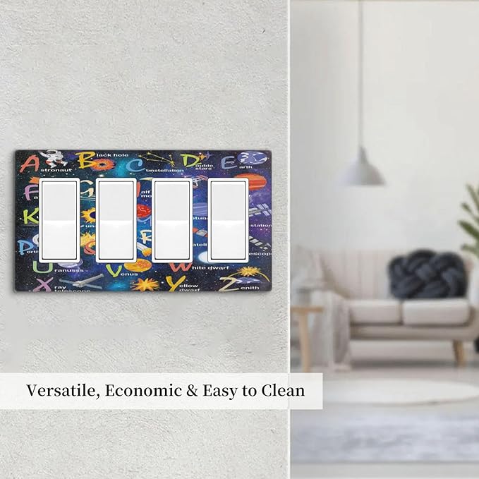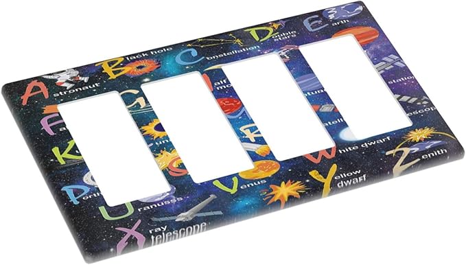ABC Outer Space 4 Gang Rocker Decora Light Switch Cover Alphabet Galaxy Decorative Outlet Covers Wall Plate Electrical Faceplate Switchplate GFCI for Kidroom Nursery Boyroom Living Room Decor