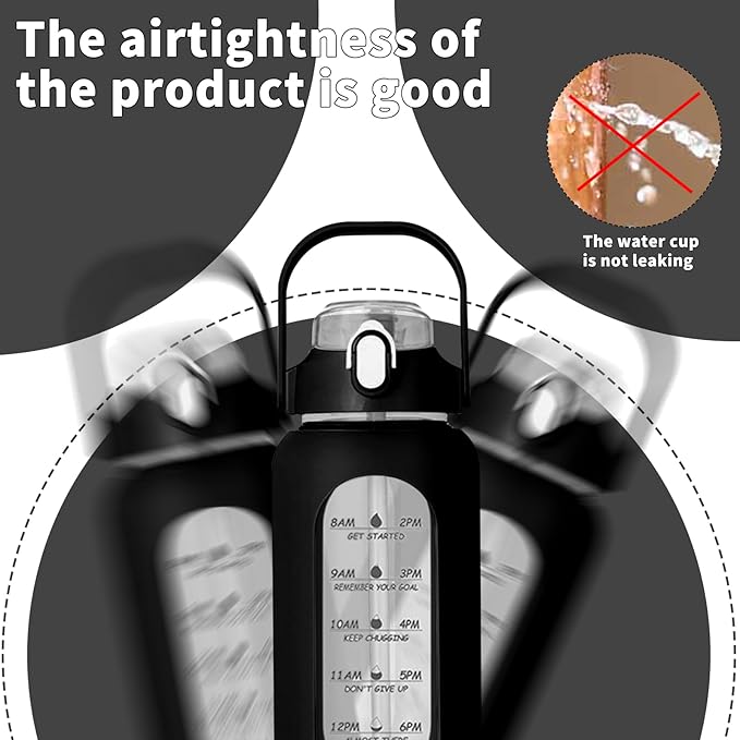 • 【Material Design】These 64oz glass water bottles, designed for Water Bottles category, are made of high-quality borosilicate glass. They are BPA-free, dishwasher safe, and come with detachable straw, a leakproof lid with handle, a fashionable silicone sleeve, and a convenient cup brush for easy cleaning