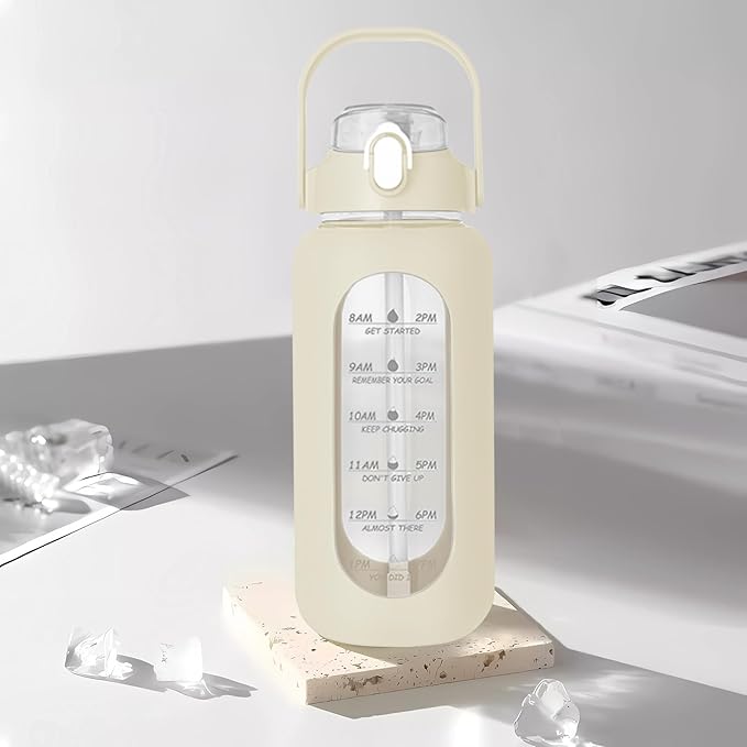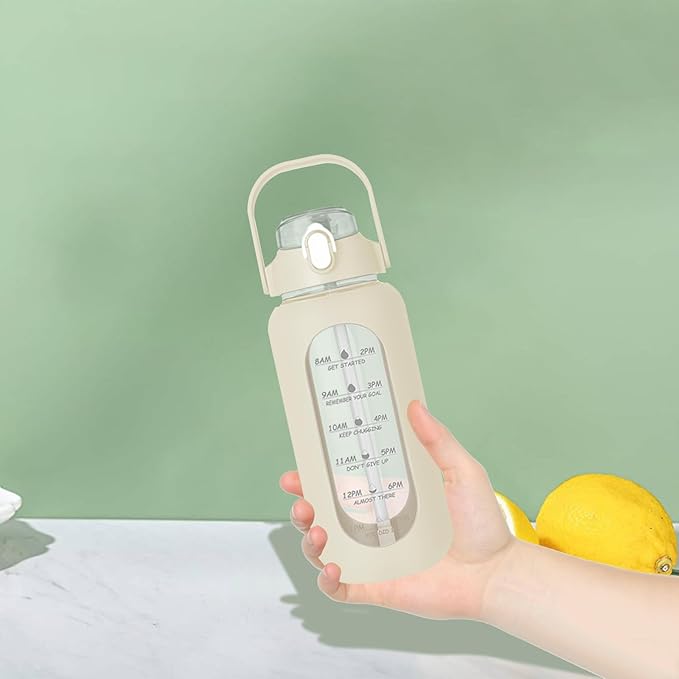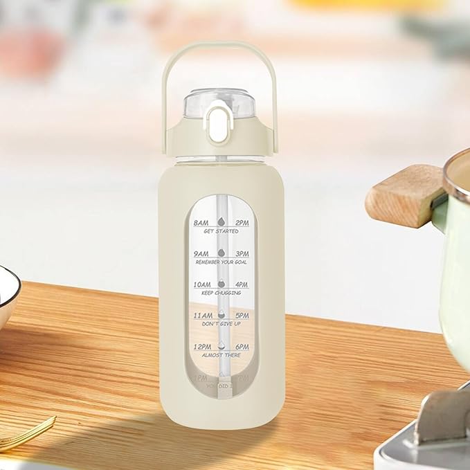 64oz Glass Water Bottle with Straw - Half Gallon Large Motivational Water Bottle with Silicone Sleeve Time Marker, Ideal for Gym, Sports, Workouts, Daily