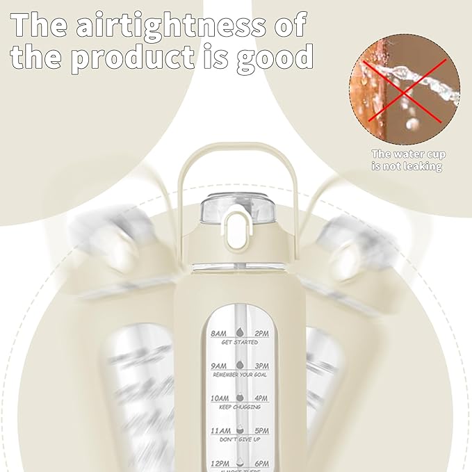 • 【Material Design】These 64oz glass water bottles, designed for Water Bottles category, are made of high-quality borosilicate glass. They are BPA-free, dishwasher safe, and come with detachable straw, a leakproof lid with handle, a fashionable silicone sleeve, and a convenient cup brush for easy cleaning