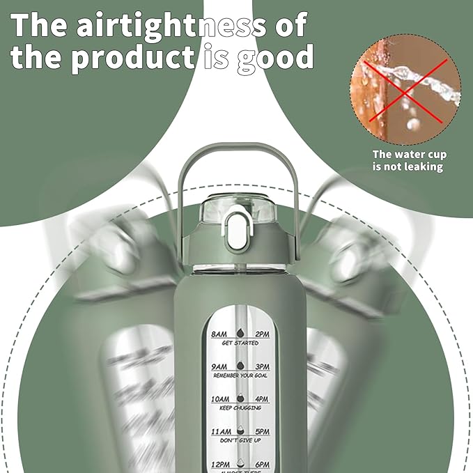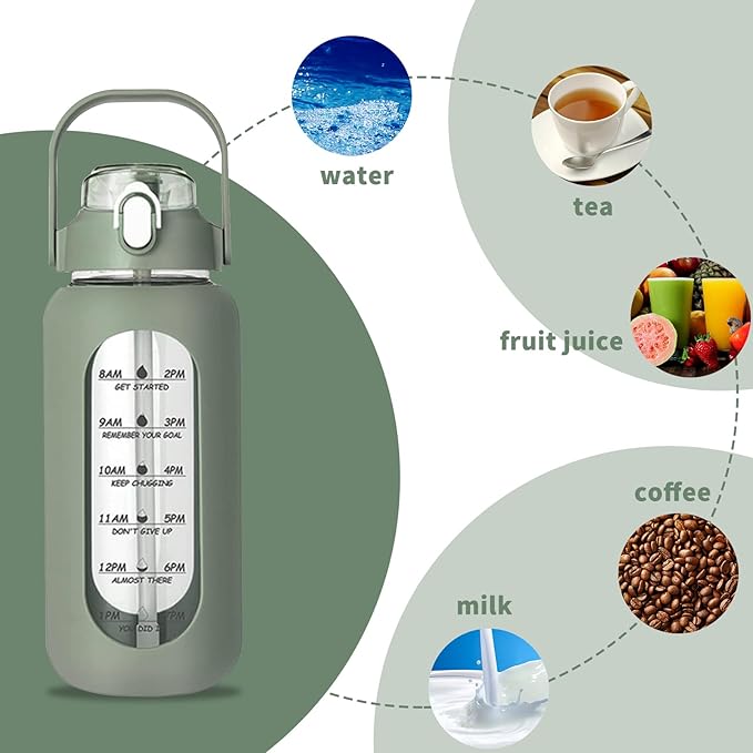 • 【Material Design】These 64oz glass water bottles, designed for Water Bottles category, are made of high-quality borosilicate glass. They are BPA-free, dishwasher safe, and come with detachable straw, a leakproof lid with handle, a fashionable silicone sleeve, and a convenient cup brush for easy cleaning