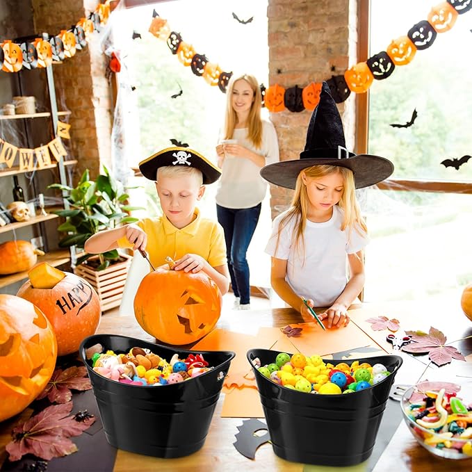 6 Pieces Ice Buckets Bulk, Plastic Ice Buckets with Handles, Oval Storage Tub, Large Capacity Ice Drink Bucket for Party Bar Wine Beer Champagne Beverage Bottle Cooler (Black,18 Liter)