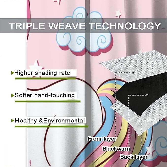 Unicorn Curtain for Kids Bedroom,Pink Cartoon Rainbow Darkening Curtains Decor Sliding Curtains Decorative Curtains for Girls Boys Baby Room,Living Room Decoration 42x45inch