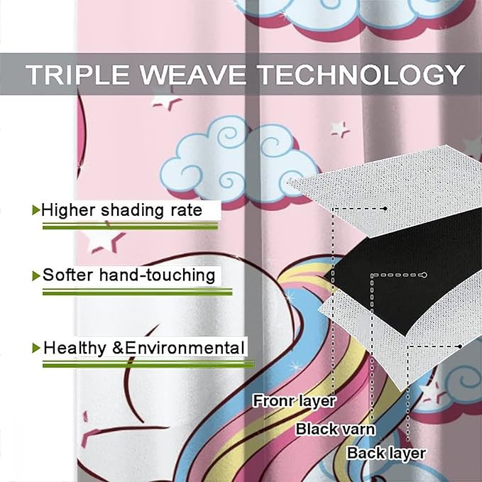 Unicorn Curtain for Kids Bedroom,Pink Cartoon Rainbow Darkening Curtains Decor Sliding Curtains Decorative Curtains for Girls Boys Baby Room,Living Room Decoration 84x84inch