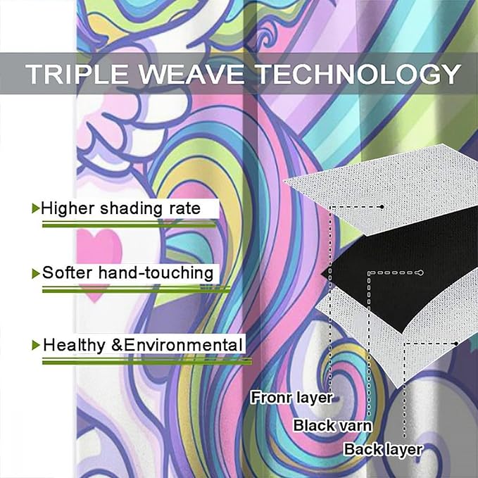 Kids Unicorn Curtains Purple Cartoon Rainbow Cartoon Room Blackout Curtains Boys Girls Baby Room Decor Curtains Living Room Decor 42x63 Inch 2 Panels