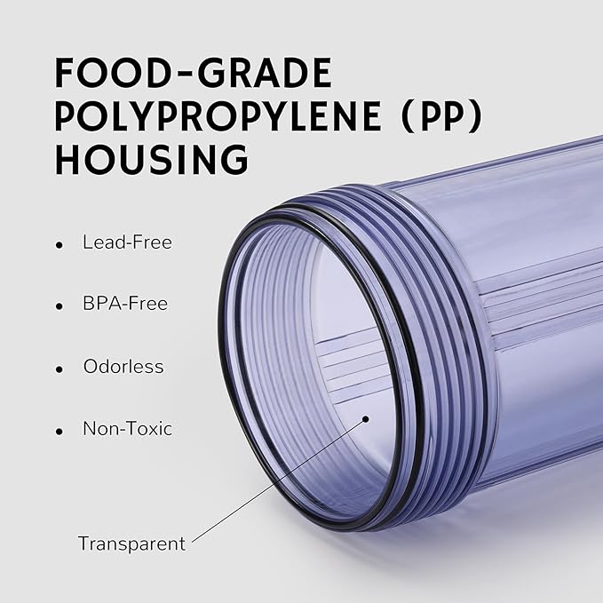 • Premium Construction: Crafted with premium quality to meet NSF standards, reinforced polypropylene housing ensures strength and chemical resistance to provide you with safe and healthy filtered water.