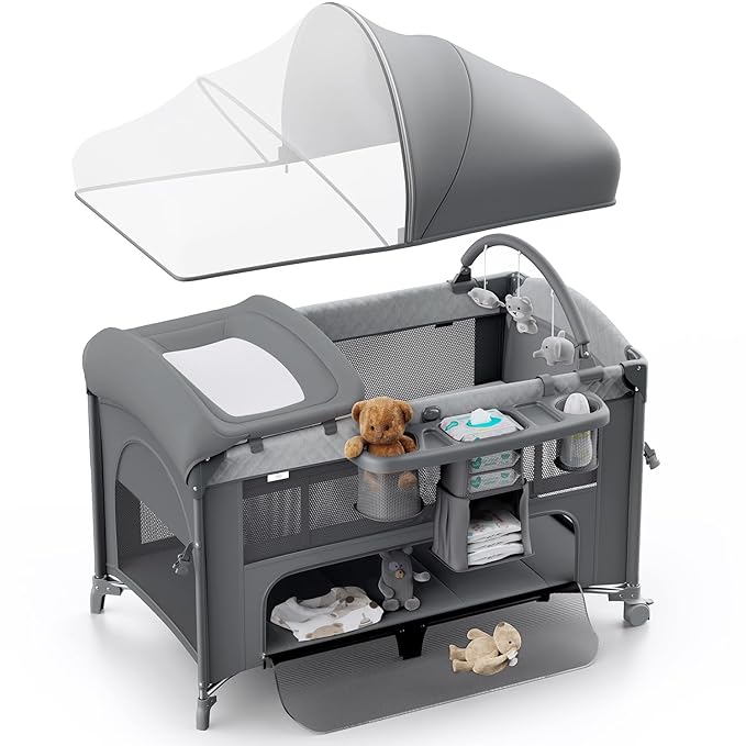 • Designed for Your Little One: Elevate your baby's experience with a detachable arched toy rack at the crib head, keeping them engaged. The fully enclosed, half-mesh, half-fabric mosquito net guarantees a tranquil sleep, shielding your little one from insects while allowing easy monitoring for parents. The bottom is carefully equipped with a spacious storage area for easy organization of baby's belongings