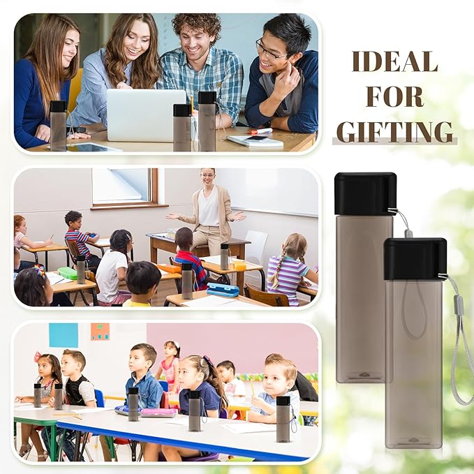 • Convenient and Versatile: our rectangle water bottles are the nice companion for an active lifestyle; With a compact size of 2.17 x 7.99 inches/5.5 x 20.3 cm, they are easy to carry and fit in your bag, making them ideal for travel, gym, school, and work