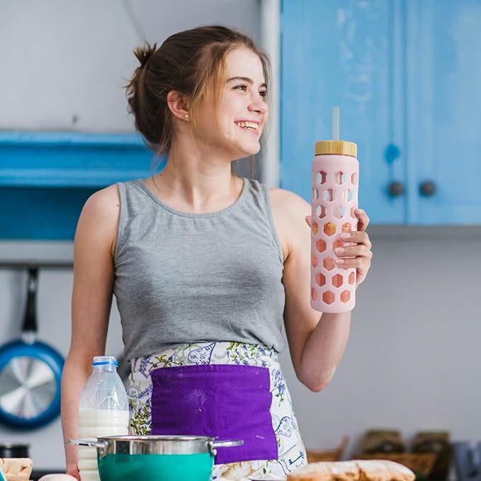 • 【Protective Sleeve】Cafezi 32-ounce glass water bottle with time markers, keeping water purified. This is a very convenient way to track water intake, stay hydrated, and maintain overall health