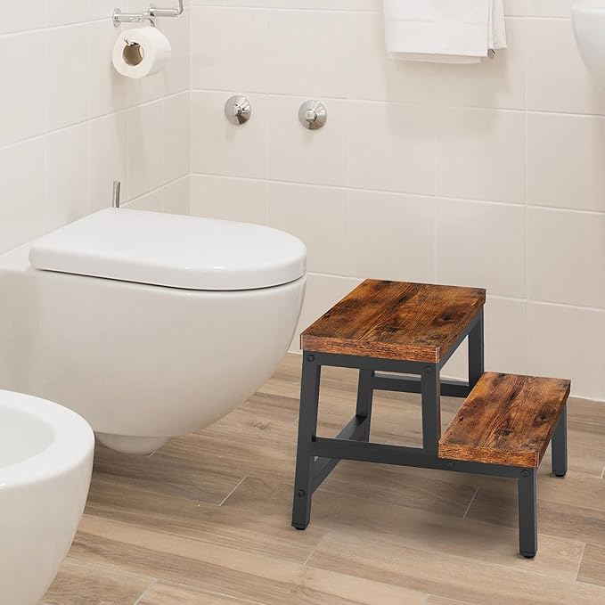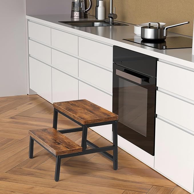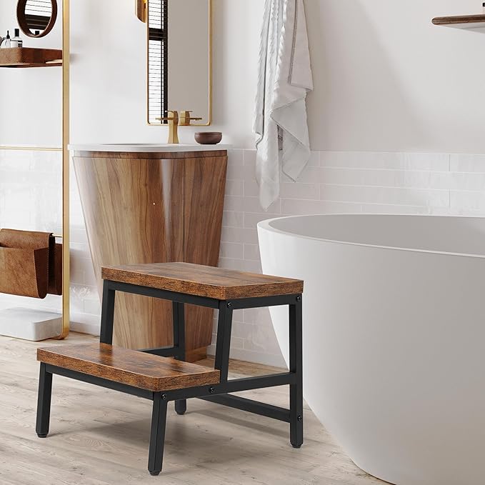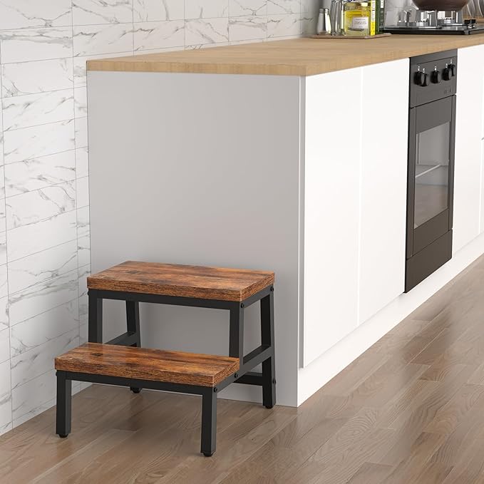 • Sturdy and Stable Structure: Crafted from solid wood and iron frame smooth surface, our adult wooden step stool offer excellent stability and support, with a maximum weight capacity of 500 lbs. per wood stool for long-lasting use