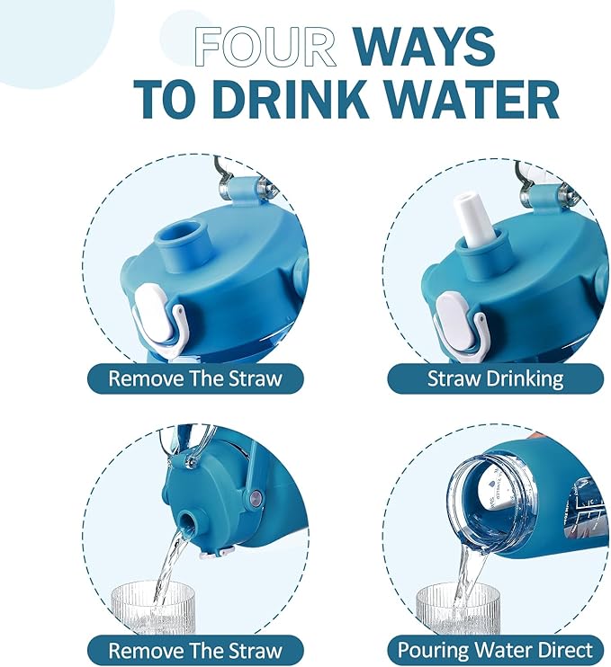 • ❤Glass Water Bottle with Pop-up Straw Lid- Kytffu large 56oz water bottle with straw is designed with an upgraded lid that ensures 100% leakproof and dustproof. Advanced one-click button makes you drink easier, just push the button and the straw will pop out automatically.