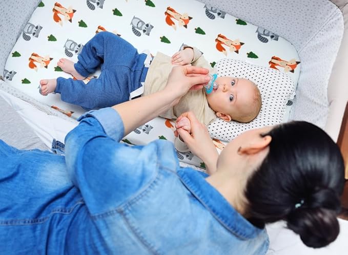 4 Pack N Play Sheets Woodland Forest Animals Wood Neutral Unisex Fitted Baby N Play Sheets Fitted for Standard Pack and Plays and Mini Cribs Set for Baby Boys or Girls