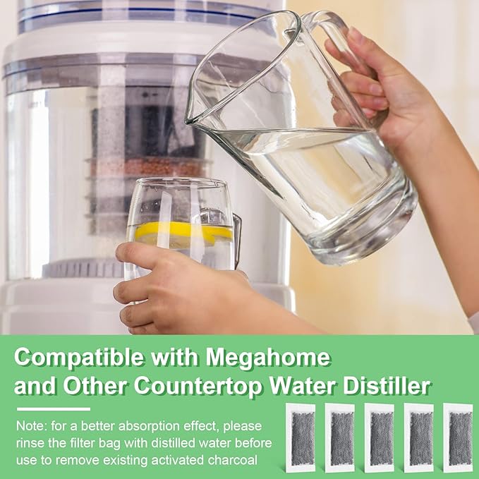 24 Packs Replacement Activated Charcoal Distiller Filters Coconut Shell Activated Carbon Filter Sachets Compatible with Countertop Water Distiller Models