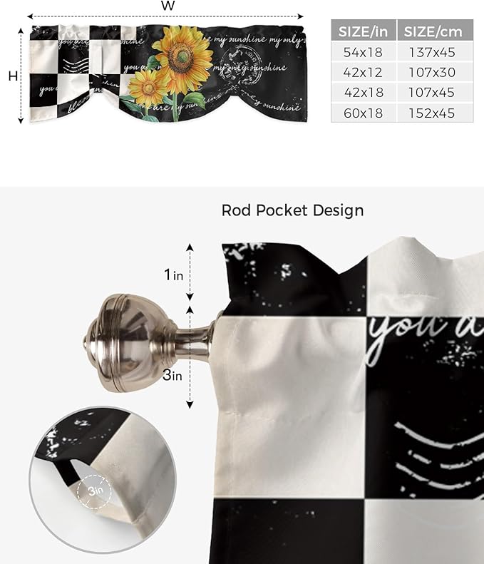 • Rod Pocket Short Kitchen Curtains: With Built-In 4" Rod Pocket,It Fits Up To 2" Diameter Basic Or Decorative Curtain Rods Of Blackout Window Valances/ Valance Window Treatments Tiers/Tie-Up Shades