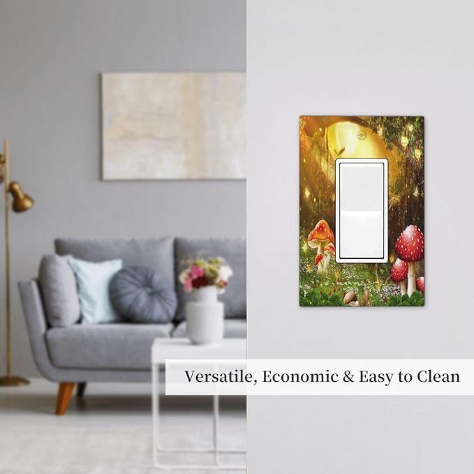 Red Mushroom Forest Fairy Moon Butterfly 1 Gang Rocker Bohemian Light Switch Covers Decorative Single Decora Outlet Wall Plate Faceplate Switchplate GFCI for Kidroom Nursery Decor