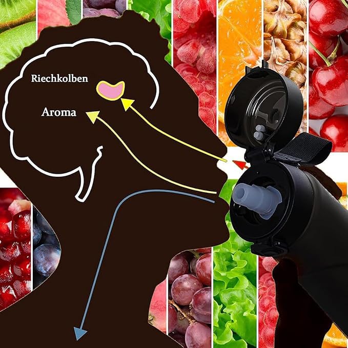 • 【EASY TO DRINK】Air water bottle fragrance ring design adds refreshing fruit aroma to drinking water, making it more appetizing and enjoyable,Harnesses the power of scent and cognitive conditioning to make drinking water a more attractive and rewarding habit,so, This motivational air water bottle helps reduce calorie and sugar intake from other beverages, leading to lower risk of obesity and related health issues