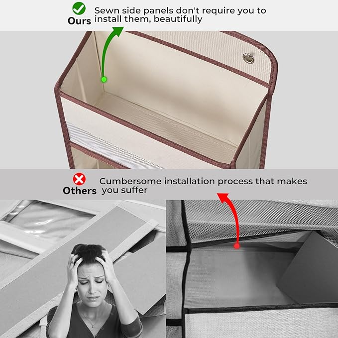 • 💓Assemble in 10 seconds & CLEAR WINDOW: The closet organizer and storage require no tools. Our bathroom organizers and storage come with pre-inserted pockets, place the cardboard in the bottom of the bin and enjoy easy organization and storage. There are visible windows on each pocket so you can see exactly what's inside, keeping an eye on the contents and staying on top of the refills, meaning the behind the door organizer won't block your view while still providing quick and easy access to essentials.