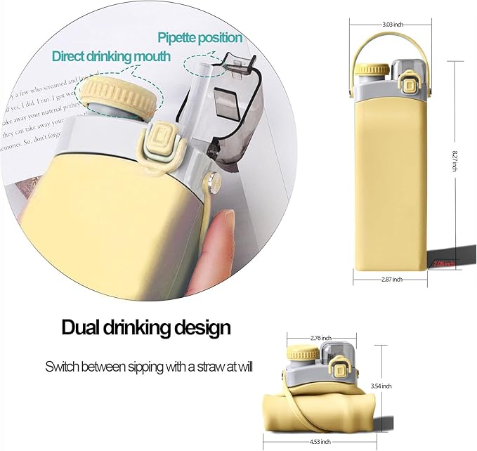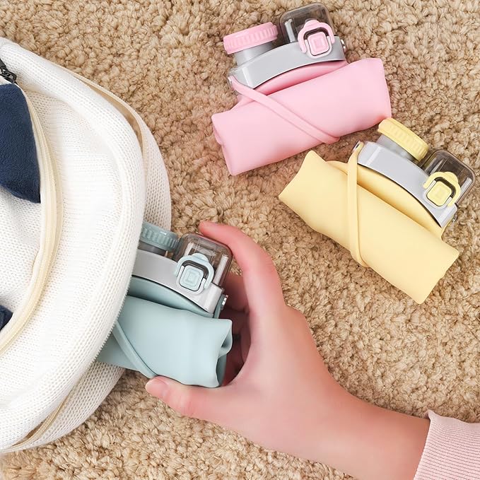 • 【LEAK PROOF AND EASY TO CLEAN】Collapse water bottles designed with silicone seal ring to prevent leakage. Wide mouth design makes collapsible water bottle easier to clean the interior and the narrow mouth prevents wetting when drinking water. When using for the first time, we advise to soak it for 30 minutes with boiled water for thorough cleaning.