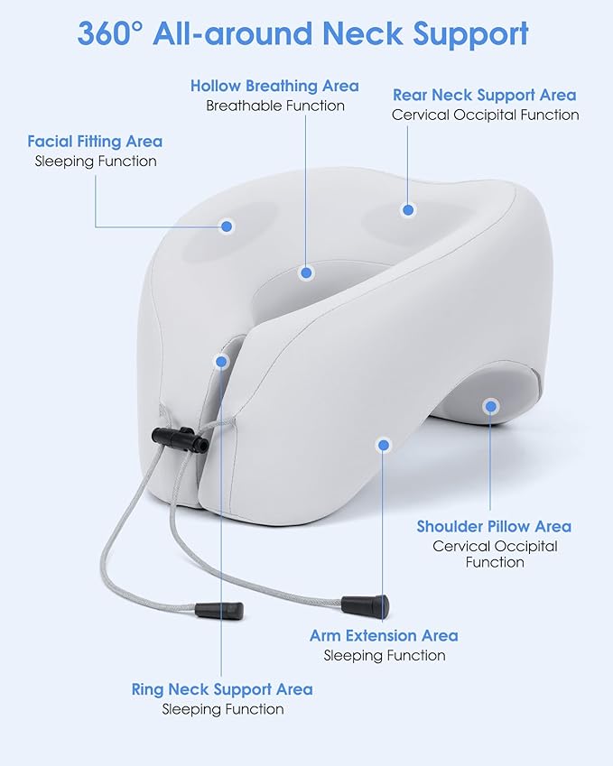 • 【2 in 1 Travel Pillow】As U-Shape Pillow, our travel pillow offers 360° all-around neck support and helps you keep your neck and head upright to alleviate pressure and without getting any soreness during travel. As Napping Pillow, the airplane neck pillow is designed with a perfect 45° angle, allowing your head and neck to naturally lean forward. This sleeping pillow decreases the pressure of your cervical vertebra.