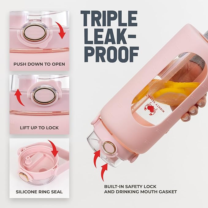 • {Effortless Hydration with Straw} - Enjoy the pure taste and convenience of our glass water bottle with straw. It's designed for easy sipping during your busiest days or toughest workouts, allowing you to stay hydrated without missing a beat.