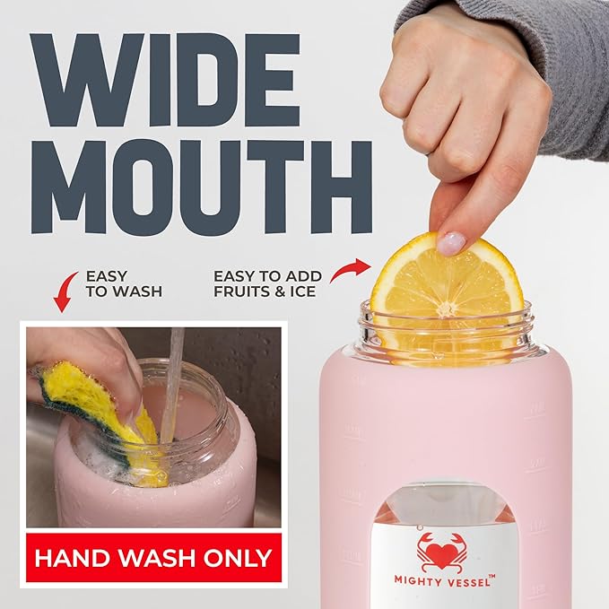 • {Cleaning Made Simple} - Our 2 liter water bottle is equipped with a wide mouth to simplify the cleaning process, ensuring a hassle-free experience while allowing for effortless addition of ice and fruits for your personalized hydration.