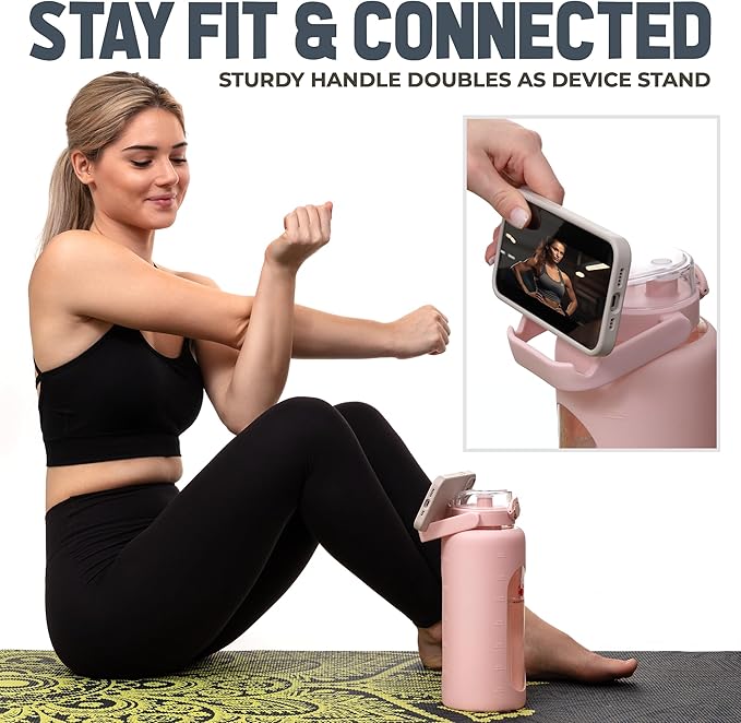 • {Substantial Capacity} - Our 64 Oz water bottle significantly surpasses others in terms of volume. This ample size ensures you stay hydrated without the need for frequent refills, making it perfect for extended exercise sessions, long runs, or intense workouts.