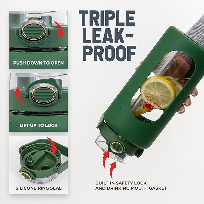 • {Effortless Hydration with Straw} - Enjoy the pure taste and convenience of our glass water bottle with straw. It's designed for easy sipping during your busiest days or toughest workouts, allowing you to stay hydrated without missing a beat.