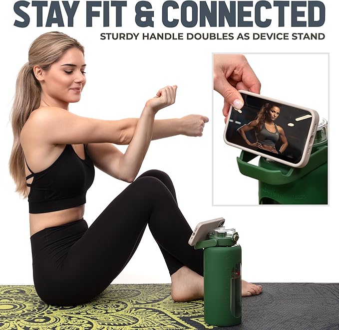 • {Substantial Capacity} - Our 64 Oz water bottle significantly surpasses others in terms of volume. This ample size ensures you stay hydrated without the need for frequent refills, making it perfect for extended exercise sessions, long runs, or intense workouts.