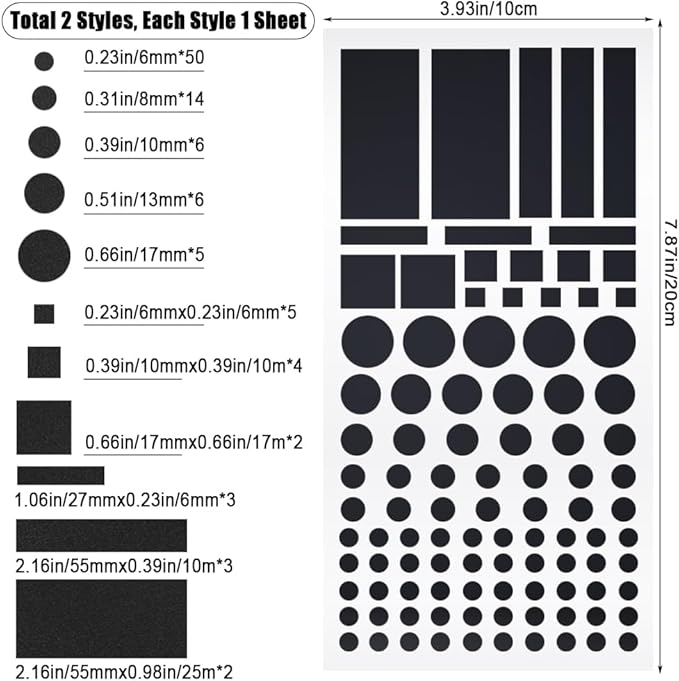 • [2 SHEETS]: Total 2 styles, each style 1 sheet. Size: 7.87x3.93inch/20x10cm. Enough length to meet your daily needs.