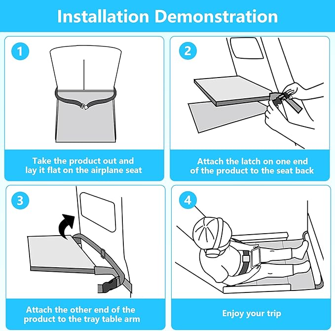 • Enhance your travel experience with our Airplane Seat Extender for Kids! Featuring a Bonus Pillow for Extra Comfort, Effortless Setup, and Easy Portability - Your All-in-One Travel Solution!