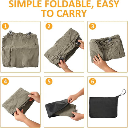 • Environmentally Friendly - Our airplane footrest are made of washable soft PVC flocking, which is environmentally friendly and healthy, soft and durable. Weighing just 0.9 pounds, It can be compressed to 11 inches by 8 inches and put into a drawstring bag to carry around, inflated to a 19.6"x17.7"x12.5" sitting/ floating cubes whenever you need. With the travel footrest for airplane, our trips will be more comfortable and fun. However, we don't have to worry about it taking up space.