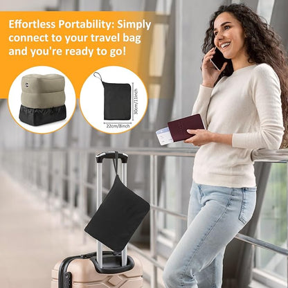 Inflatable Foot Rest Pillow for Travel - Adjustable Height Flight Foot Rest with Eye Mask and Earplugs for Kids & Adults on Airplane, Car, Train, Office, and Home (Gray, 1 PCS)
