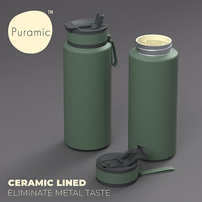 • Innovative Puramic Coating: Experience pure taste with our bottle's interior ceramic coating, eliminating any unwanted metallic flavor. This advanced feature ensures that every sip is as crisp and delicious as the first, making it the perfect companion for both hydration and flavor preservation.