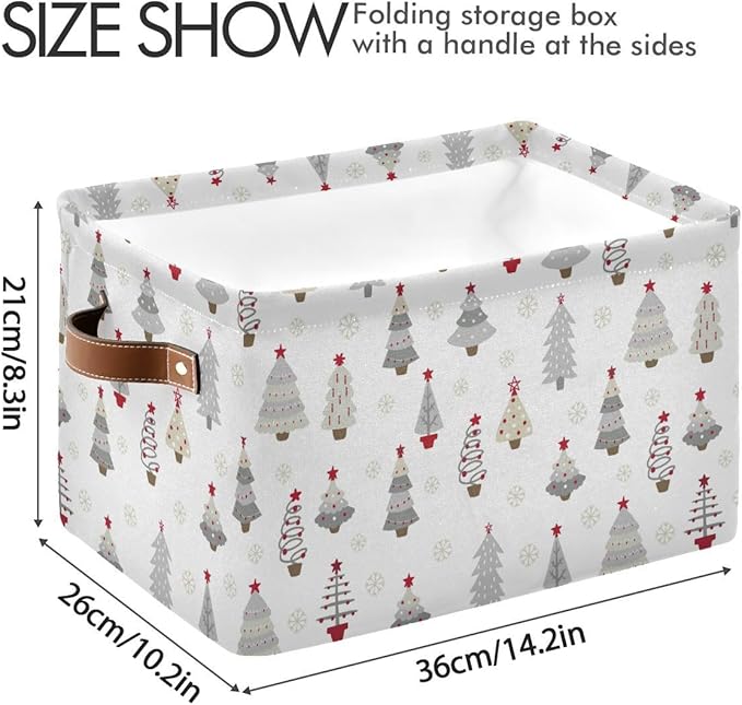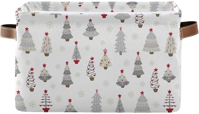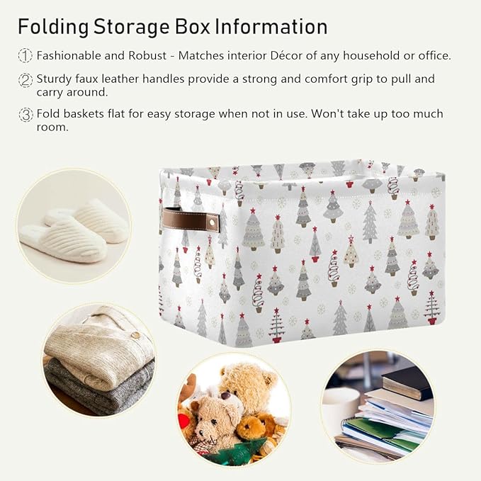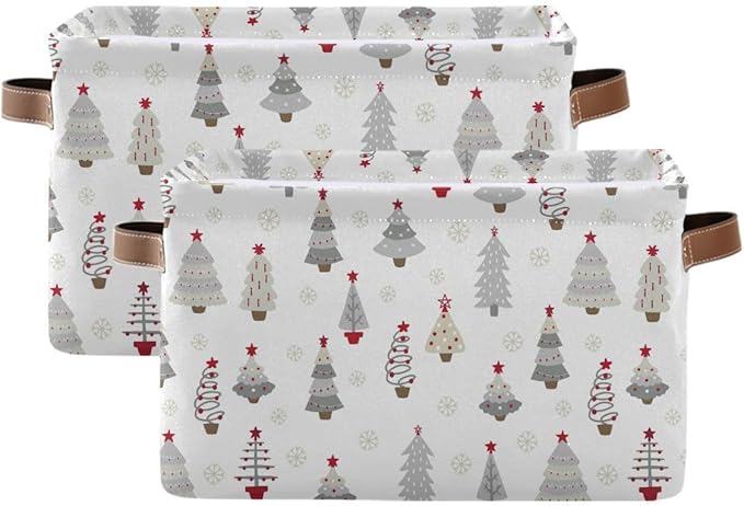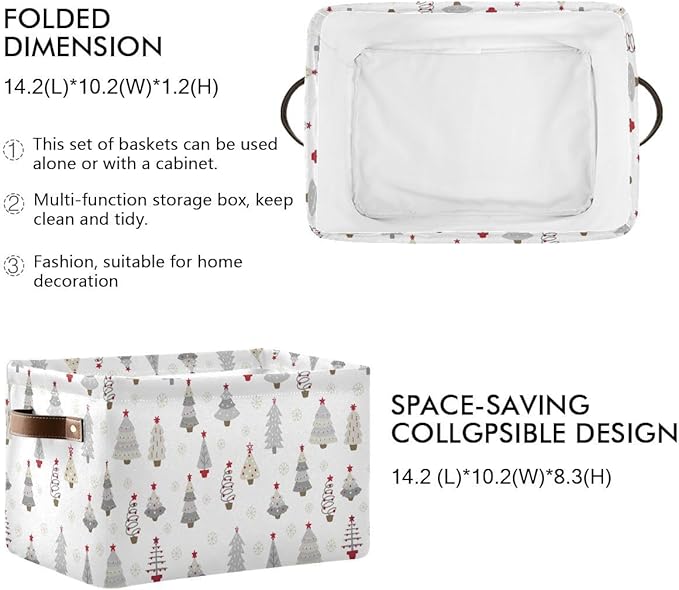 Christmas Tree Gray Storage Basket Fabric Kitchen Baskets Winter Snowflake White Grey Open Home Storage Bins Boxes Foldable Organizer Bag for Book Shelf Closet Baskets 16×12×8 Inches