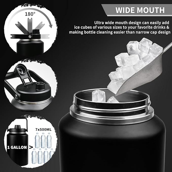• 【Wide Mouth Water Bottle】: Our large water bottle features a ultra wide mouth design with a mouth diameter of 4.33 inches, allows ice cubes of all sizes to be easily added to your favorite beverage. And our wide mouth is easier to clean bottles than the narrow lid design.