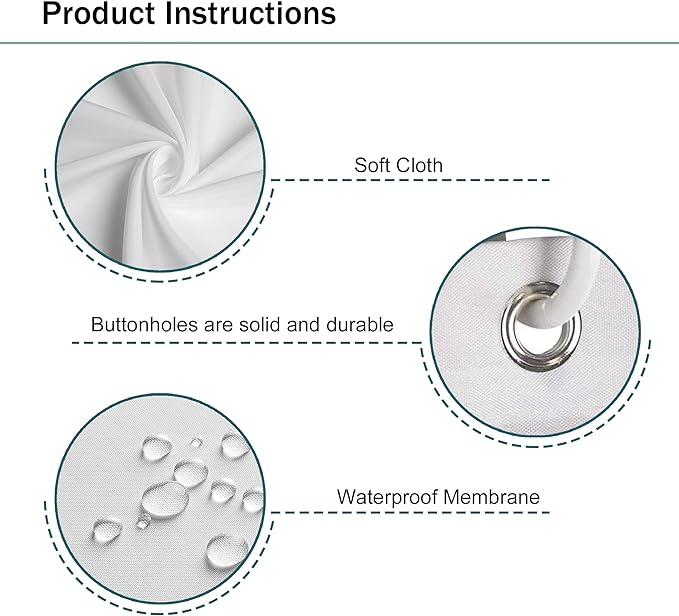 • ▶What' s Included: Each fabric shower curtain features 12 high-quality plastic hooks.