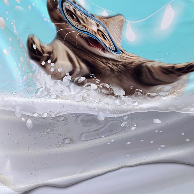 AILONEN 3D Bathtub Cat Shower Curtain for Kids 72" W*72" H Inch,Kawaii Diving Cat Leaps Out of Bathtub Shower Curtain,12 Pack Hooks Polyester Waterproof Fabric Decor for Bathroom Bathtub Panels