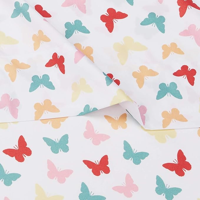 Amazon Basics Kid's Soft Easy-Wash Lightweight Microfiber 3-Piece Sheet Set, Toddler, Multi Colour, Butterflies