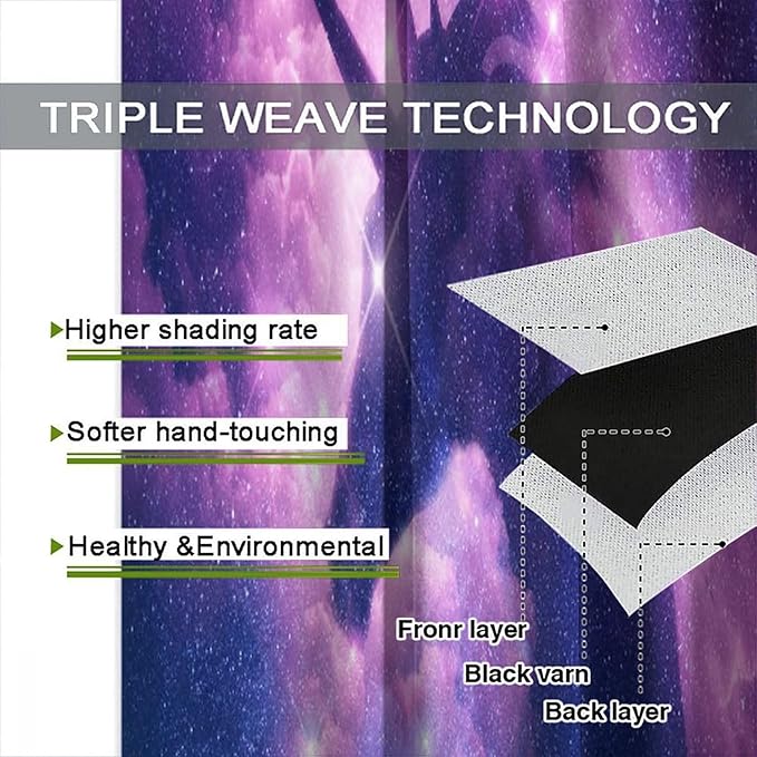 Unicorn Curtains Children's Cartoon Starry Sky Theme Unicorn Pattern Curtains Star Galaxy Boys Girls Room Blackout Curtains 42x54 Inch 2 Panels