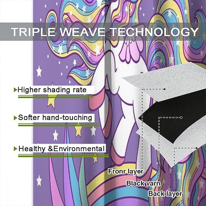 Unicorn Curtains Fantasy Star Moon Cartoon Theme Curtains Cute White Unicorn Rainbow Design Printed Curtains Boys Girls Room Curtains 55x63 Inch 2 Panels