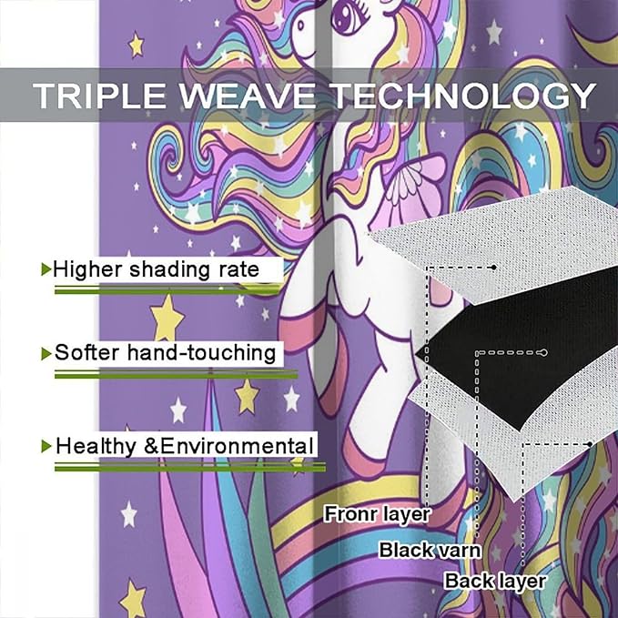 Unicorn Curtains Fantasy Star Moon Cartoon Theme Curtains Cute White Unicorn Rainbow Design Printed Curtains Boys Girls Room Curtains 72x63 Inch 2 Panels