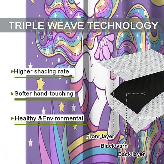 Unicorn Curtains Fantasy Star Moon Cartoon Theme Curtains Cute White Unicorn Rainbow Design Printed Curtains Boys Girls Room Curtains 52x84 Inch 2 Panels