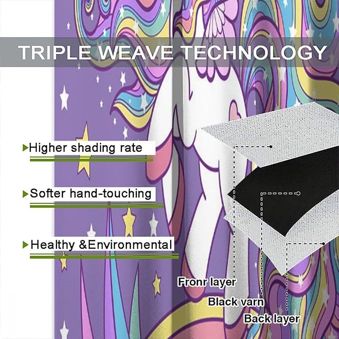 Unicorn Curtains Fantasy Star Moon Cartoon Theme Curtains Cute White Unicorn Rainbow Design Printed Curtains Boys Girls Room Curtains 42x45 Inch 2 Panels