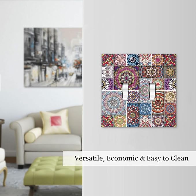 Morocco Talavera Mexican Tiles Printed Colroful Mandala Double Toggle Light Switch Covers 2 Gang Wall Plate Dual Decorative Switchplate Electrical Faceplate for Kitchen Bathroom Bedroom Decor