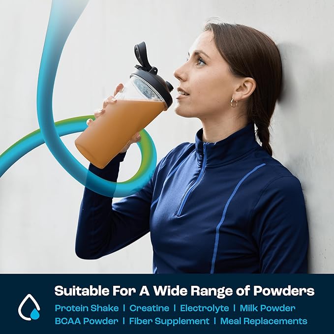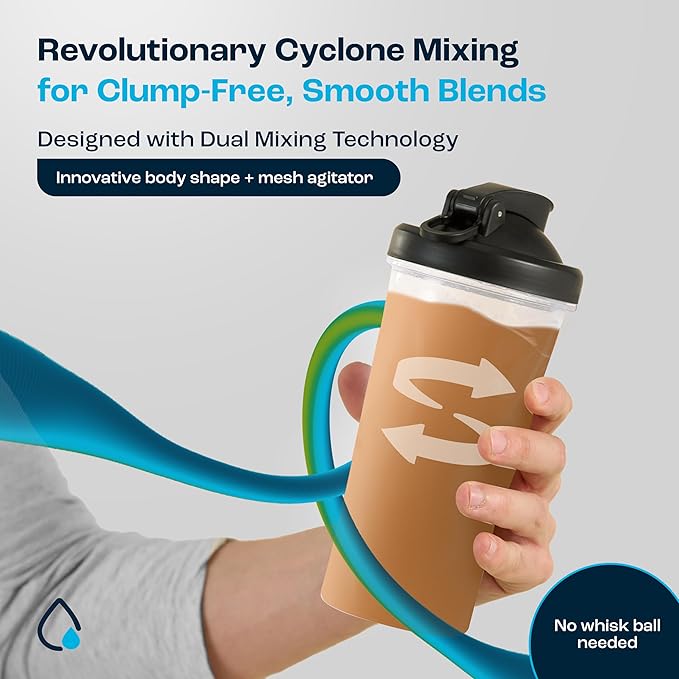 • Revolutionary Dual Mixing Technology - The Aquafit Protein Shaker Bottle's innovative shape, paired with a mesh agitator, creates a cyclone effect for smoother blends. No need for whisks and shaker balls—we designed this protein shake bottle to prevent clumps in protein shakes, smoothies, pre-workout mixes, and powder supplements.