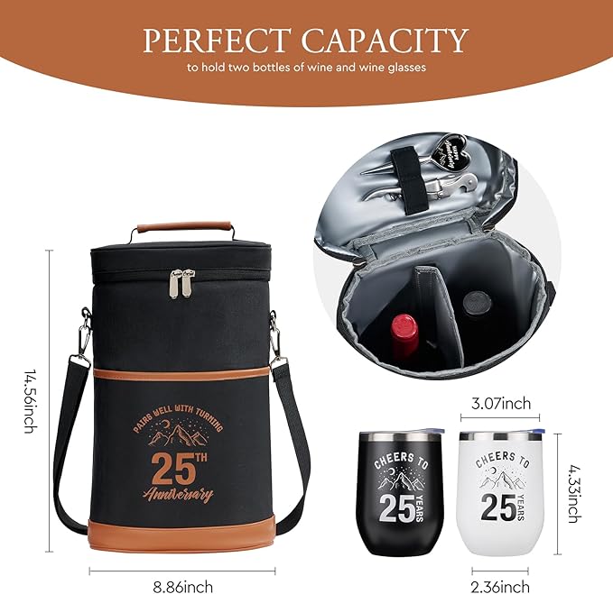 AW BRIDAL 25th Anniversary Wedding Gifts for Her, Valentine's Day Anniversary Wine Gifts for Couples 25 Years Gifts Anniversary Married Gifts for Parents Grandparents Family